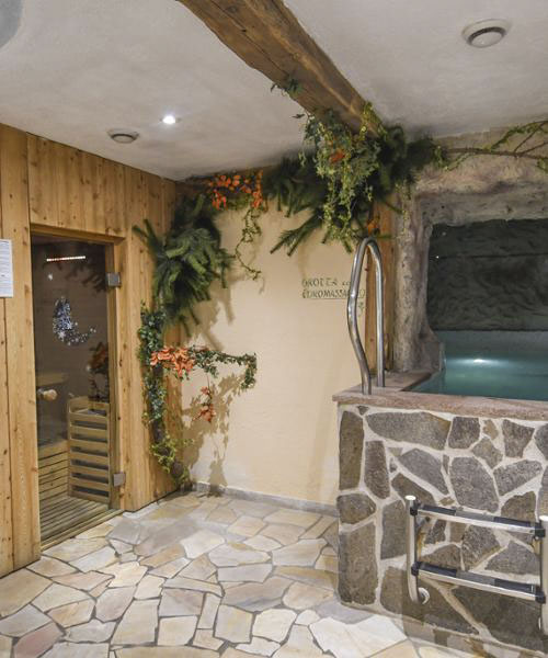 Nel centro potete trovare una piccola piscina in grotta con acqua sempre calda e profonda 1,40 mt, idromassaggio e getti di acqua corrente rendono ancora più piacevole il vostro bagno.